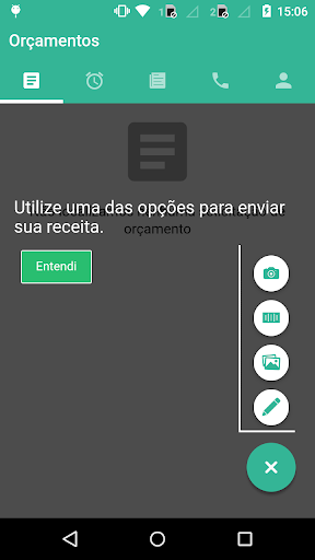 • Solicitar Orçamentos: Orçamento com apenas um passo*, enviando o código de barras** ou tirando uma foto da receita para o envio.