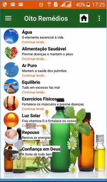 Osiem środków zaradczy jest aplikacją, która zawiera osiem wskazówek zdrowotnych.Te "środki zaradcze" są bezpłatne, bo są natury, a także znane jako środki zaradcze Boga.Osiem środków zaradczych to praktyki, że jeśli są przestrzegane, zapobiegaj chorobom, aw niektórych przypadkach może również przywrócić zdrowie lub pomóc odzyskaniu ludzi, którzy są chorych.Jest to treść skierowana w każdym wieku, dla osób, które chcą żyć dobrze iz jakością życia.