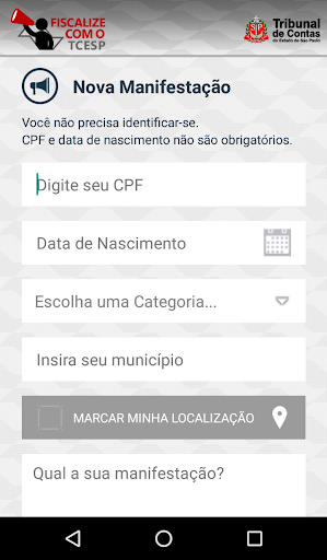 Esse aplicativo destina-se a disponibilizar à sociedade mais um canal de comunicação para participar ativamente no apoio de irregularidades constatadas pelos cidadãos, as quais serão avaliadas e encaminhadas para fiscalização do TCESP, caso sejam procedentes.