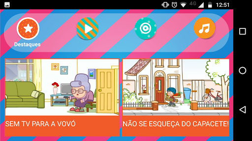 Feito para Crianças – Navegação fácil, com botões grandes, os vídeos podem ser acessados por Destaques, Séries e Assistidos, com rolagem intuitiva e tela cheia ao selecionar o vídeo, sempre visando facilitar a navegação das crianças no aplicativo.