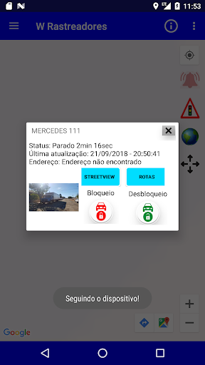 Possibilita o acompanhamento de dispositivos monitorados pela plataforma da WRastreadores.