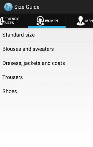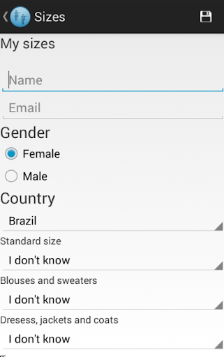 The application stores your sizes and the sizes of your friends. It is easy to check at any time.