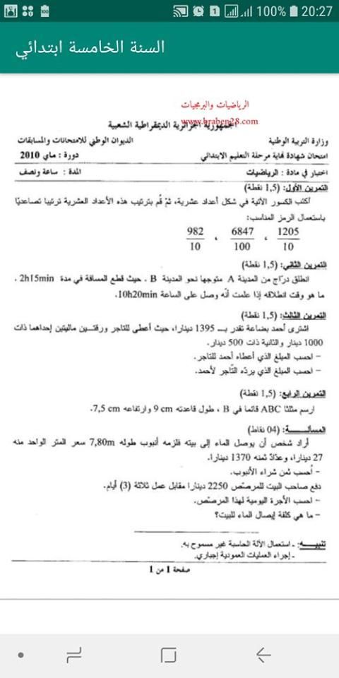 السنة الخامسة ابتدائي , مواضيع محلولة رياضيات و اللغة العربية واللغة الفرنسية . بالاضافة الى ذلك اختبارات الفصول محلولة في مادة الرياضيات