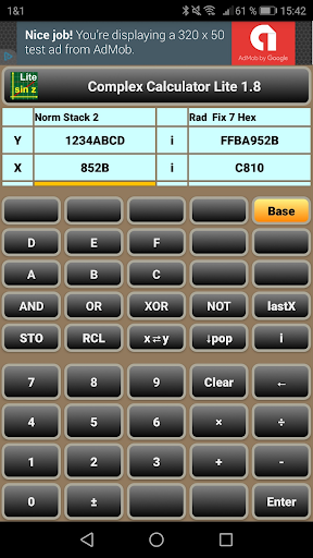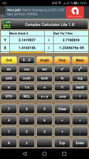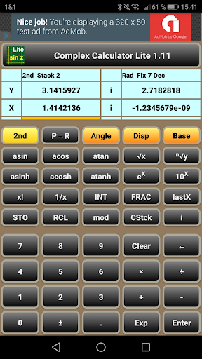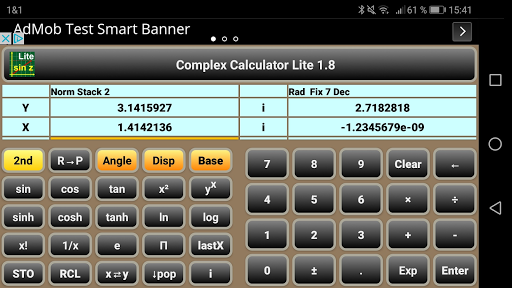 - All scientific functions work as well-known, however with complex results, if required. Even the factorial "x!" reveals some more results - using the gamma function.