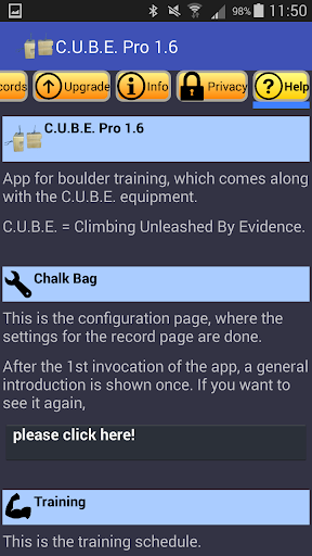 This app is based on the knowledge of current sports science to provide every climber / boulderer the possibility of a specific training. It provides the following possibilities: