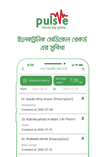 Upload your health records/medical files to our secure server. Any e-prescription you receive through the app will be stored automatically. You can share these health records during a consultation with any doctor on the Pulse platform.