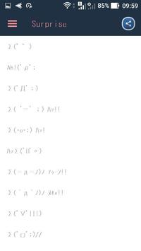 This app includes a huge collection of emoticons of Japan (kaomoji) and grouped by different topic for searching easily. Just tap to select the emoticon you like and it will be automatically copied to the clipboard, you can "paste" in text messages, social networks and anywhere you want.