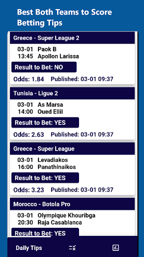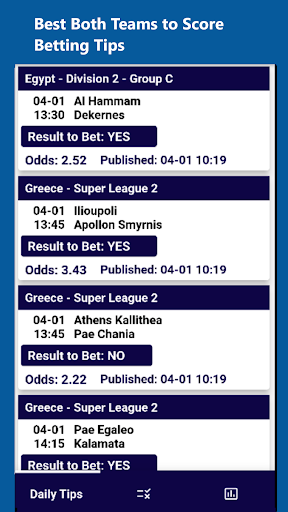 The only Both Teams to score Football app with a proven long-term positive return in Play Store