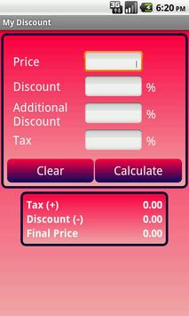 Discount Calculator is helpful to calculate discounted price while shopping. This app provides you option to calculate additional discount and Tax.You can change background color also from setting menu.