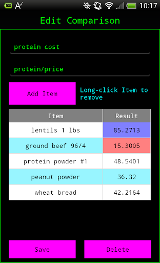 This app lets you run mathematically precise comparisons between items of your choosing. Need help deciding who to marry? Want to find the protein source with the least saturated fat per gram of protein? Or the source with the lowest cost per gram of protein? Unsure of for whom to vote? This app has answers for you.
