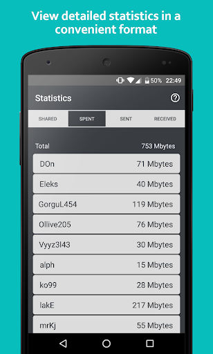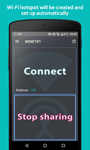 For sharing your internet with others You'll recieve currency (“megabytes”), which You can use to get various bonuses, “cashback” or to connect to paid spots.