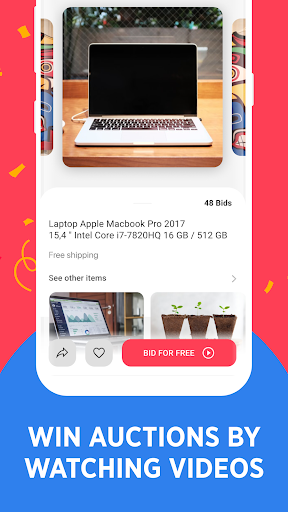 Making money has never been so simple! You not only earn cash but you also receive goods with a big discount or for free. It is not just online auctions where you buy used stuff and where you have to outbid the participants with a higher price. The GiveAway app is organized in a different way - you bid for an item with 1 Bid (received by watching video) at a time. To outbid someone you need to bid with 1 Bid only. You win the item if you were the last one to bid for it when the auction ended.