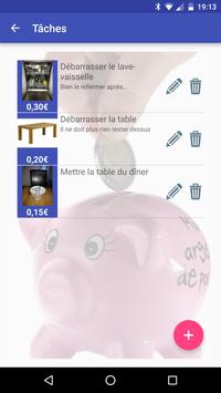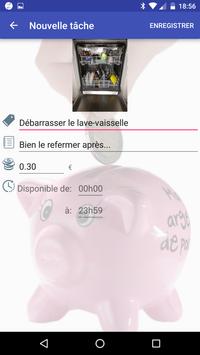 Cette application permet de gérer une liste de tâches dont les enfants doivent/peuvent s'acquitter afin de cumuler des gains.