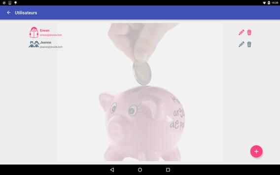 Il doit également définir les comptes utilisateurs avec lesquels il partagera cette liste de tâches. Ces utilisateurs peuvent être d'autres "administrateurs", qui l'aideront à maintenir, faire évoluer et valider la liste de tâches, ou des utilisateurs simples, qui doivent effectuer les tâches pour obtenir les gains. Il est important de noter qu'un seul utilisateur (administrateur) doit s'inscrire. Les autres comptes associés doivent être créés au sein de l'application. A défaut, il sera impossible de partager la même liste de tâches.