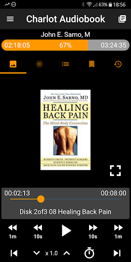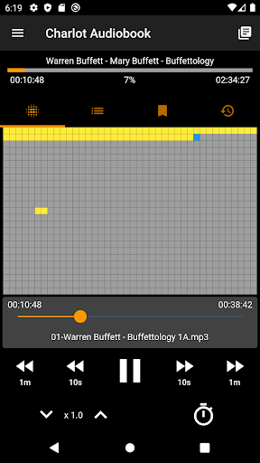 Play audio book and see your progress with a large chart, every square represent 1/1000 of the book.
