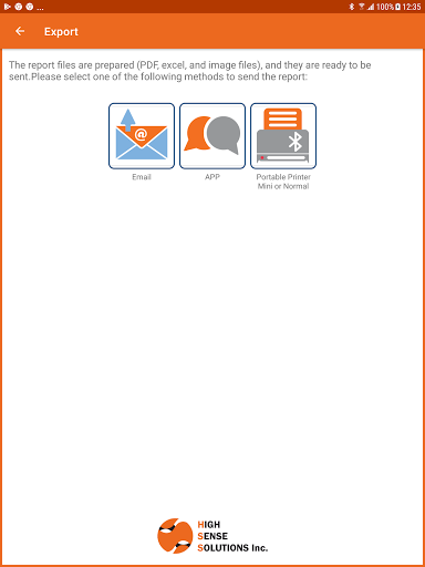 The application works offline and can store information on Android-based smartphones and tablets. The application can also send reports via email or any messaging applications and communicate with printers via Bluetooth to make a paper report for you.