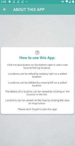 My Fishing Spots makes it extremely easy to scroll through every saved spot, edit or delete that spot, and even display the location on the map.