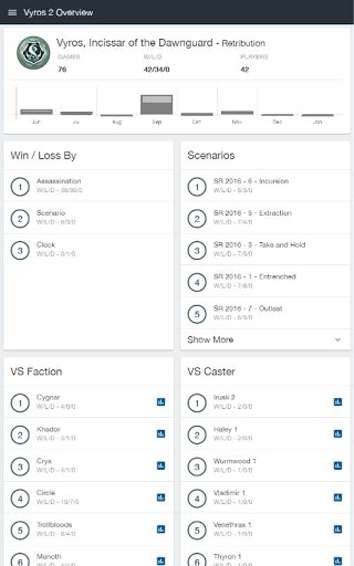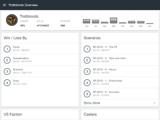- View all results submitted to the Battle Reporter database via the Faction or Caster dashboard,