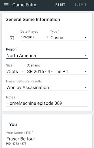 - Track all your own games, using a unique Player ID (PID) and view your results on the main dashboard.