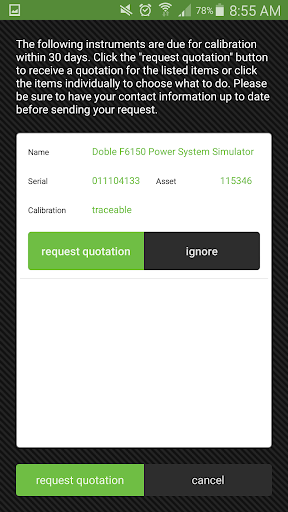 Download and review certificates and reports from any previously completed calibrations. Search through previous calibration by date, instrument serial number, purchase order number or certificate number.
