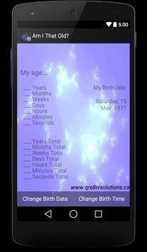 With this app, you will instantly know how old your are in years, months, weeks, days, hours, minutes, and/or seconds.