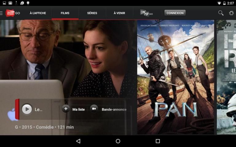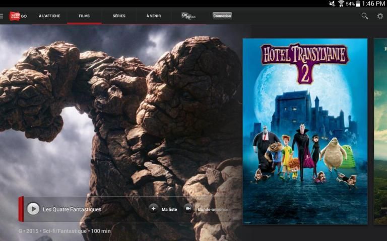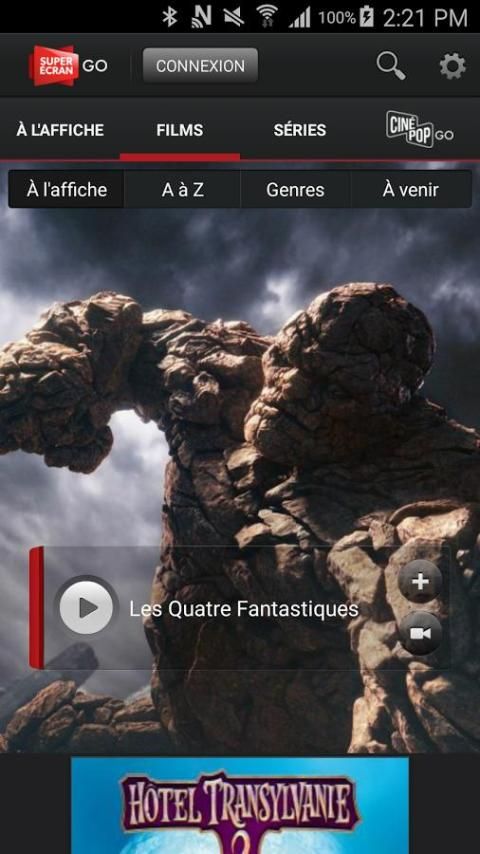 With movie Go, enjoy instant and unlimited access to over 300 hours of premium content, anytime, anywhere! Access a database of more than 150 films for all tastes, as well as exclusive series-including the prestigious series HBO- it all in high definition. Super Screen GO is available from your phone or tablet Android (4.0+)