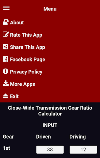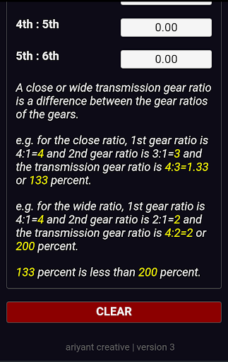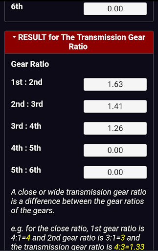 App for finding close or wide of Transmission Gear Ratio input 2 dats of gear ratios.