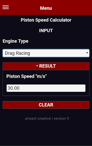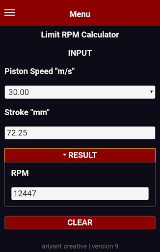 This app is recomended for Engine Builder's. This app can be use for finding the right limit of engine speed (RPM) with specific/type of an engine e.g. racing, drag race, grasstrack/trail/trial.