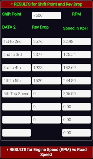 Road Speed Calculator. Result in km/h.Road Speed, Shift Point & Rev Drop Calculator. In this app includes :
