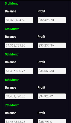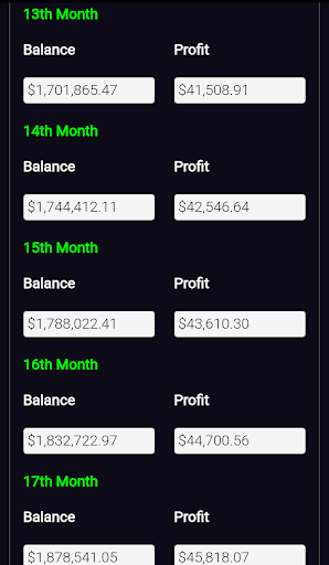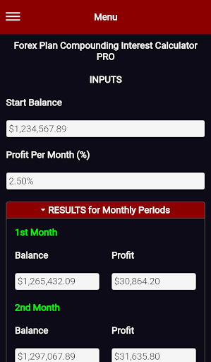 Forex Plan Compounding Interest Calculator PRO. Results in monthly and yearly periods.