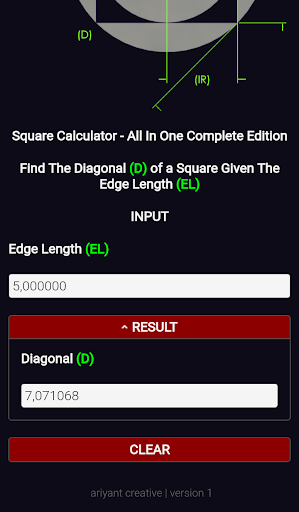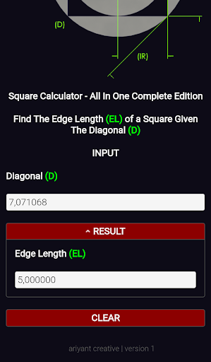 - Find The Edge Length (EL) of a Square Given The Diagonal (D)