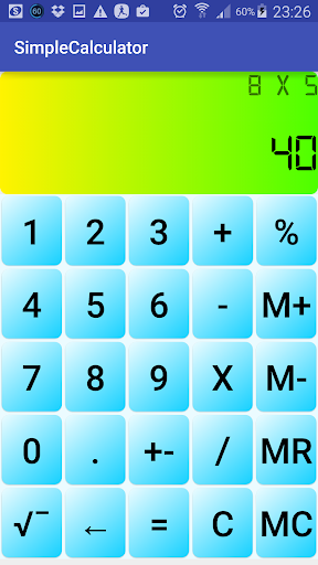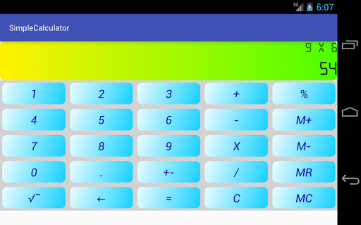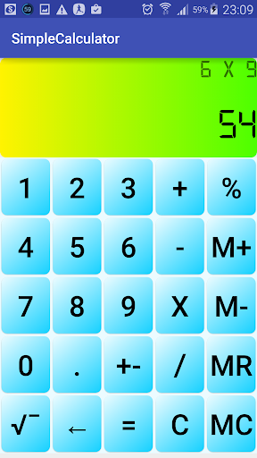 Simple calculator is app useful for daily simple calculations. It is provided with simple operations like addition, subtraction, multiplication, division, square root. It is leightweight easy to use userfriendly app. Any idea for upgradation is welcomed. Plz message if any problem is there i will try to resolve it.