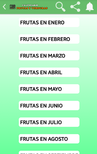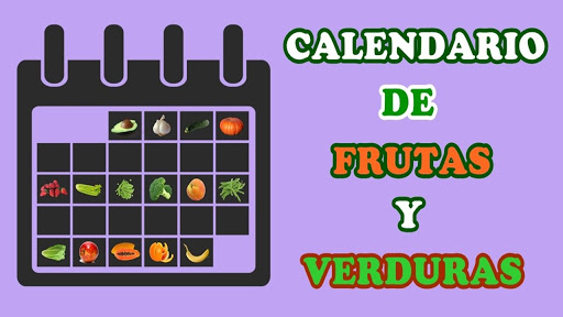 -Calendarios de Frutas y Verduras con todos los meses: Enero, Febrero, Marzo, Abril, Mayo, Junio, Julio, Agosto, Septiembre, Octubre, Noviembre y Diciembre.