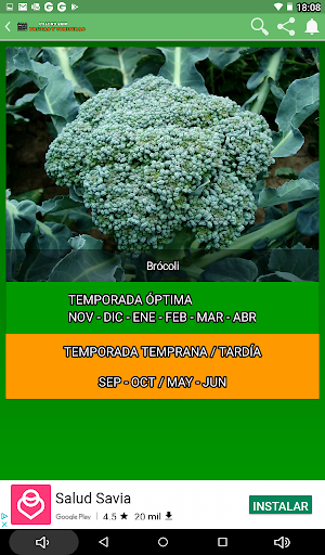 Con esta aplicación podrá saber en cada mes que frutas y que verduras está en la temporada óptima de consumo y comercialización. Así como cual es su temporada de recolección temprana y tardía. Además de las frutas y verduras cultivadas en España, también podrá informarse de la temporada de importación de las que no son cultivasa en España. Es un sencilla pero muy práctica aplicación, que le ayudará a consumir frutas y verduras de la mejor manera posible, ya sea por añadirlas a su dieta como recomiendan las Organización Mundial de la Salud. Una App imprescindible para consumidores vegetarianos o veganos. Les hará más fácil saber que frutas y verduras consumir en invierno, primavera, verano o otoño.