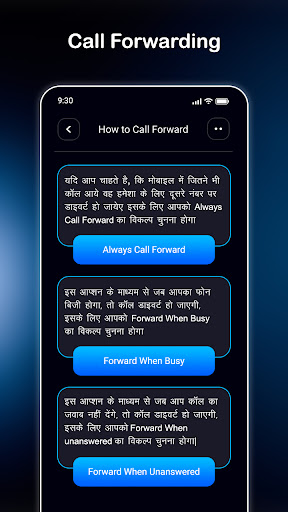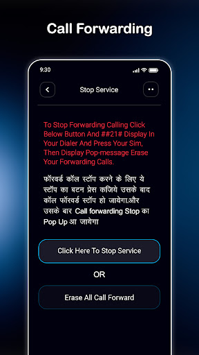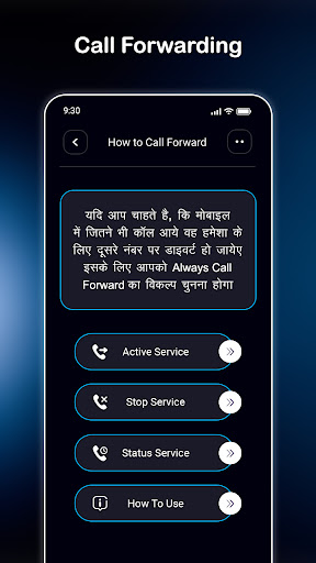 This App is very useful to you if you require to forward your calls to other numbers. Taking headache of accessing call forwarding system, use our application and in one click you all call will be forwarded to target number.