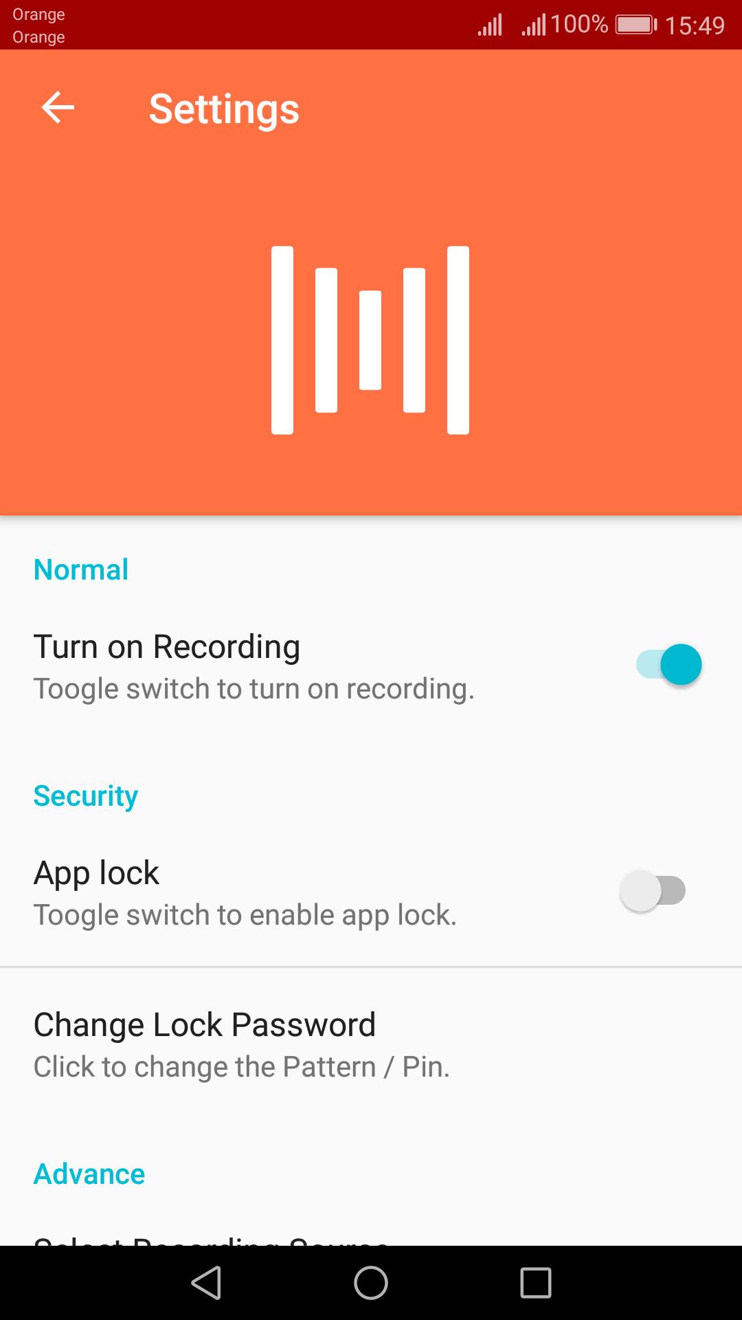 If app doesn't work for your phone or quality is low, try to change Source: MIC or VOICE CALL in settings