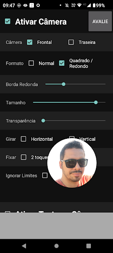 - With Floating Camera you can select front or rear camera if available on your device.