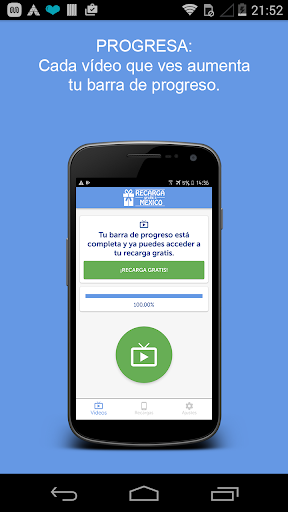 • PROGRESA: Al inicio de la aplicación dispones de una barra de progreso que va del 0 al 100%. Para aumentar el progreso sólo tienes que ver vídeos. Cada vídeo que ves aumenta tu progreso.
