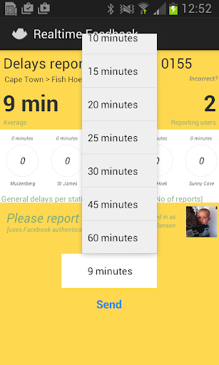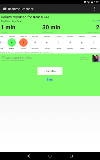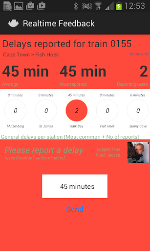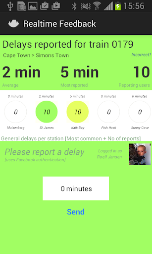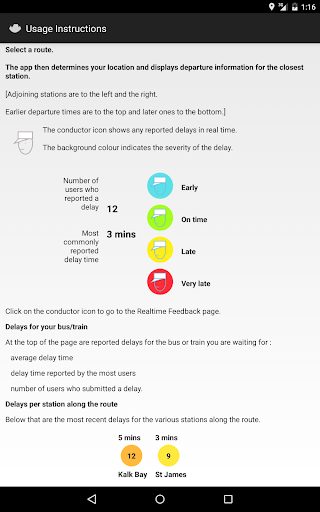 The app also has realtime feedback buttons to alert other commuters to delays.