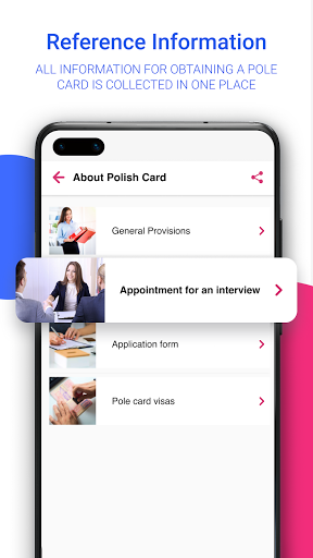 Oraz w aplikacji jest cała niezbędna informacja: procedura zapisywania się na rozmowę, przykłady wniosków do archiwum, wzory wypełnionych ankiet, tryb otrzymania wizy krajowej z Kartą Polaka i wiele innych rzeczy.