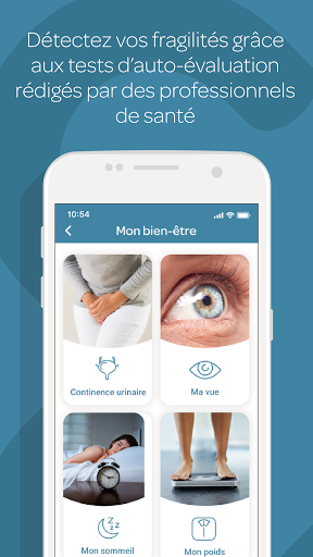 - Gepersonaliseerde preventie-inhoud: zelfevaluatietests (slaap, weergave , gewicht, gewrichten, enz.), Preventiecontroles, gezondheidsbestanden