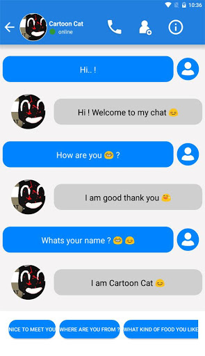 It's Nice That you can make a phone call and see Cartoon Cat, here is fake caller with Cartoon Cat is a simple application is a very cool Cartoon Cat, with a simple live chat, So just choose your method to call cartoon cat horror game, Enjoy calling cartoon cat games in an easy way, feel free and download this cartoon cat sound for having fun with friends.