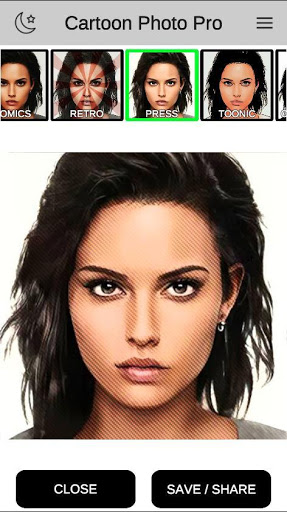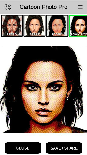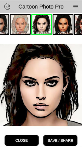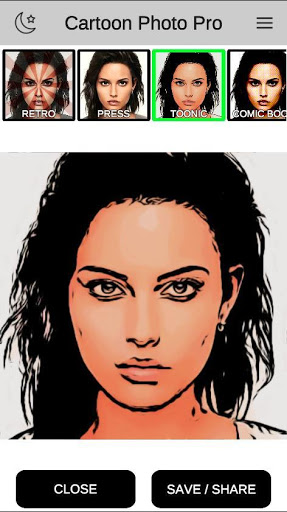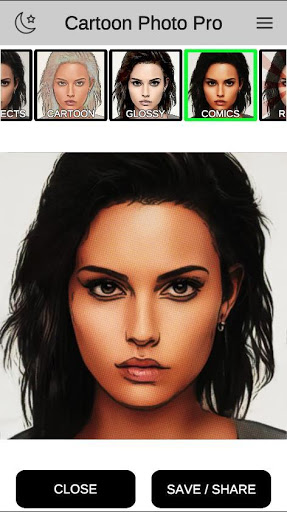 2. Select the effect you want - cartoon, glossy, comics, retro, toonic, comic book etc.