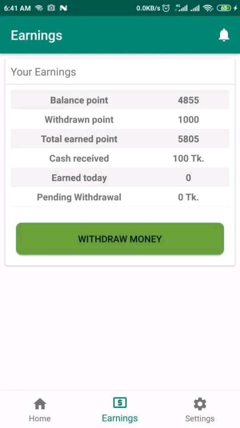 এটি আপনি এই অ্যাপ্লিকেশনটি ব্যবহার করতে পারবেন এবং অর্থ উপার্জন করতে পারবেন। আপনি আপনার বন্ধুদের রেফার করে এই অ্যাপ্লিকেশনটি ব্যবহার করে অর্থ উপার্জন করতে পারেন more আরও তথ্যের জন্য যোগাযোগ করুন
