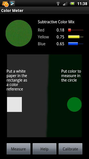 Finally there is a Android(TM) Color Meter that measures the subtractive color mix using red, yellow and blue (RYB) as primary colors!