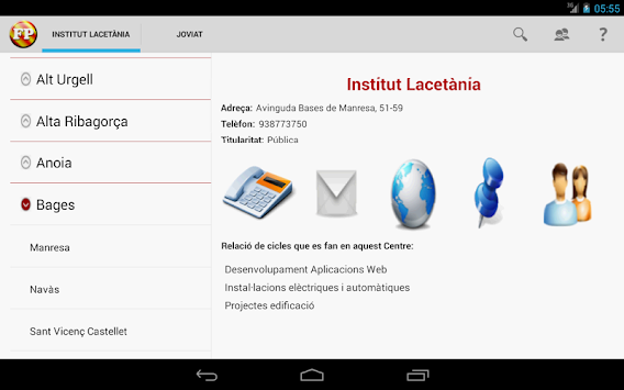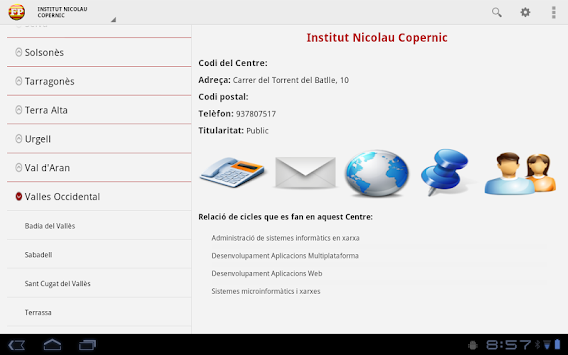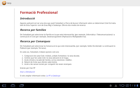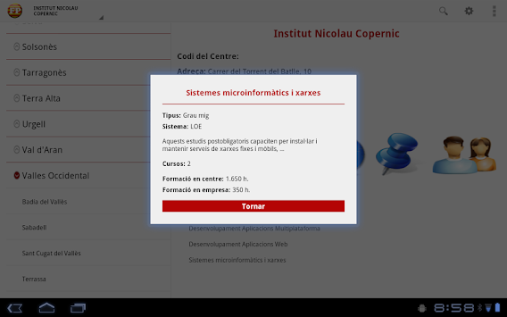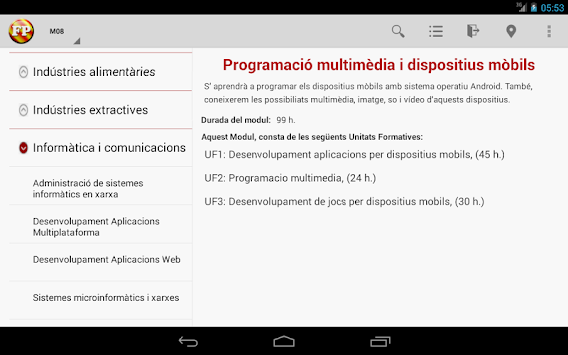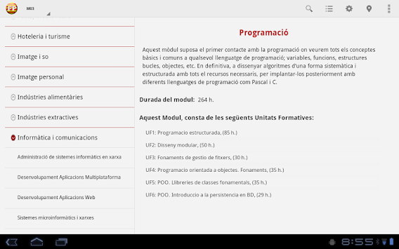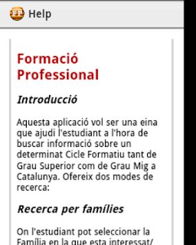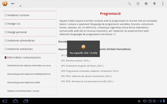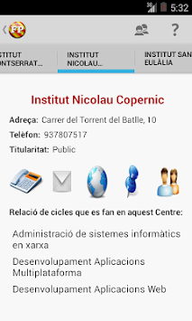 Aquesta aplicació concentra en un sol aplicatiu tota la informació dels Cicles Formatius, tant de grau mig com grau superior, a nivell de tota