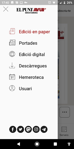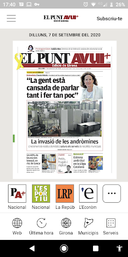 If you are a subscriber to El Punt Avui, you can download and view the newspaper by entering your username and password. You can activate it at https://www.elpuntavui.cat.