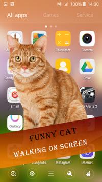 You will see cat walking on your phone screen no matter you are listening to music, playing game, Chatting on Facebook, Playing Video or surf web. It will be fun to prank your friends and let's see how they act when see cat walking from one side of screen to another.