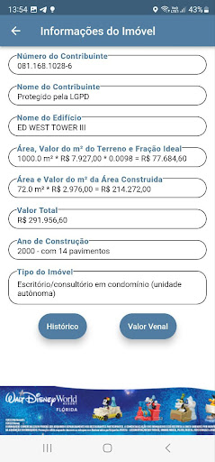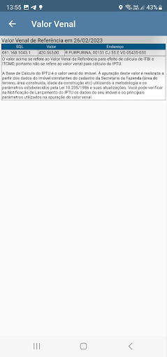 Lamentavelmente a Secretaria Municipal da Fazenda, bloqueou o acesso aos dados de IPTU e Valor Venal do Imóvel.