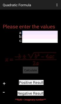 The quadratic formula solves [a^2 bx c] in case of a imaginary number, the solver would announce with the response NaN.